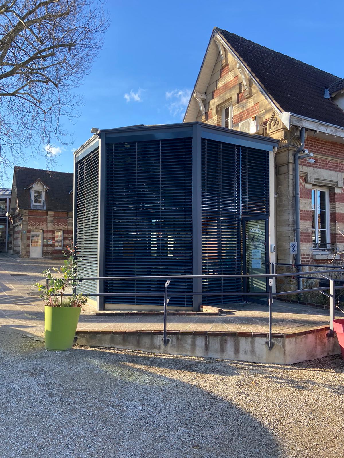 Travaux réalisés : Stores BSO (Brise Soleil Orientable), stores intérieurs (enrouleurs jours nuit et enrouleurs occultants)